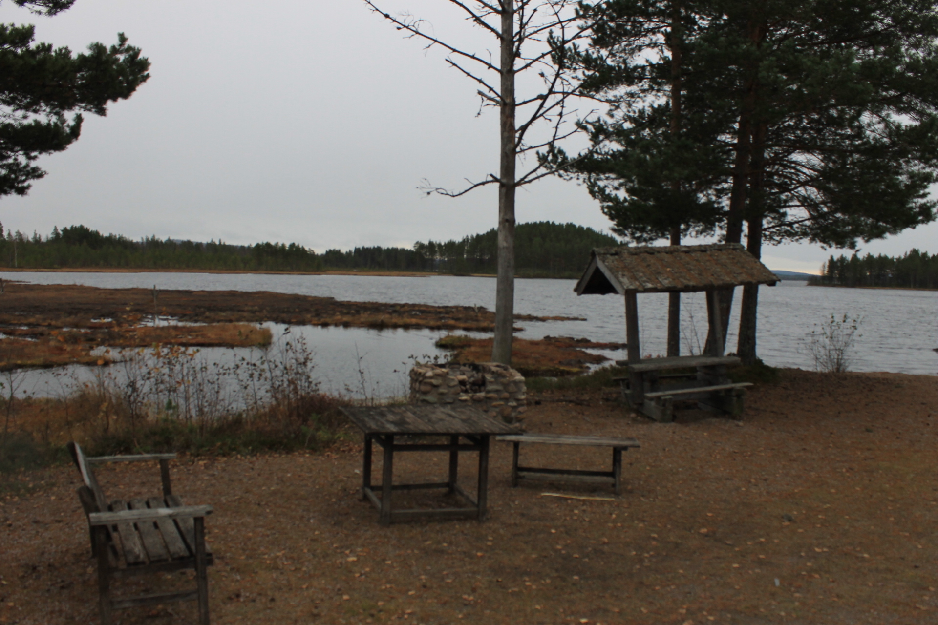 Här längs vägen finns en liten rastplast. Alldeles i närheten låg förr en Mystery längs vägen vägen cache, men den flyttades för att ge plats åt denna. Tyckte det va en fin plats så den hellre förtjänade en trad. Sommartid kan man räkna med att det kan finnas folk i närheten, då det är båtiläggningsplats, samt finns sommarstugor inom synhåll. Folk som fiskar från land och folk som tar fikarast har synts till här. Sjöarna heter Mussjön och Nordsjön