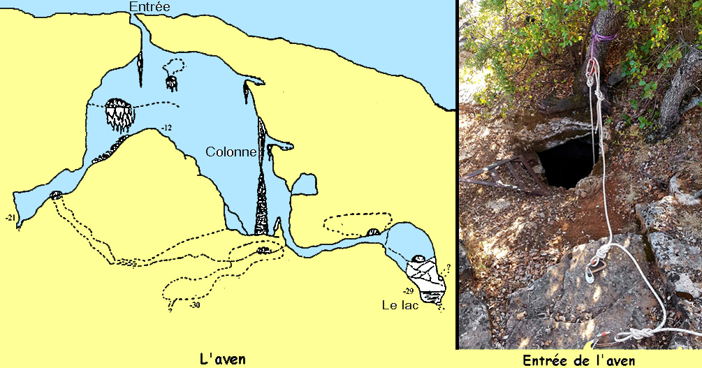 Tout a commencé par une petite tragédie. Au début des années cinquante, un chasseur voit disparaître son chien dans une cavité. Il descend alors au village pour chercher de l'aide. Parmi les sauveteurs, se trouve un gaillard un peu plus sportif que les autres, qui déroula une corde à nœuds pour récupérer le malheureux animal blessé à une patte. Mais le spéléo improvisé venait de faire une description troublante de cet aven : son sol était jonché d'ossements en tous genres : chiens, chèvres, chevaux et... humains !