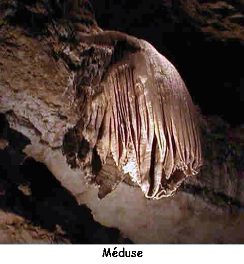 On observe aussi d'autres structures, toutes dérivées de stalactites ou stalagmites en formation.