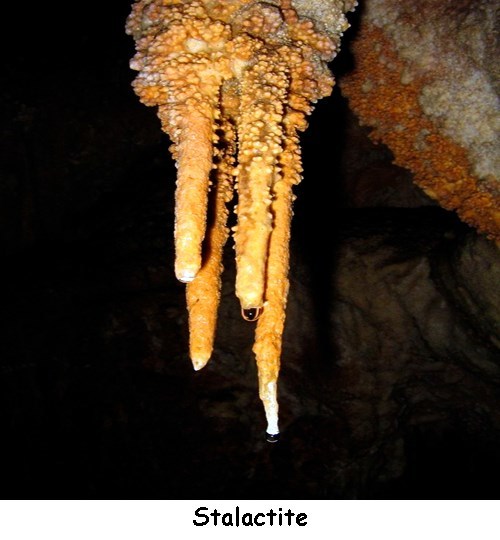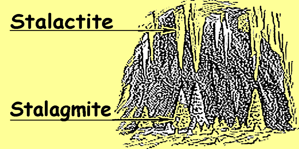 En minéralogie et en géologie, on nomme Stalactites, du grec stalaktos,(qui coule goutte à goutte), des aiguilles calcaires qui pendent verticalement du plafond de certaines excavations souterraines, et à chacune desquelles correspond sur le sol de la grotte un cône calcaire vertical et bien moins allongé que l'on appelle Stalagmite, même étymologie.