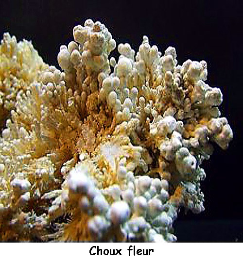 Les choux fleurs sont des stalagmites qui se forment grâce aux gouttes d'eau qui tombent sur le sol et "éclaboussent" alentour. Mais en arrivant au sol, les gouttes se séparent en plusieurs petites gouttelettes qui déposent chacune un peu de calcaire. Après des années cela forme un chou-fleur.