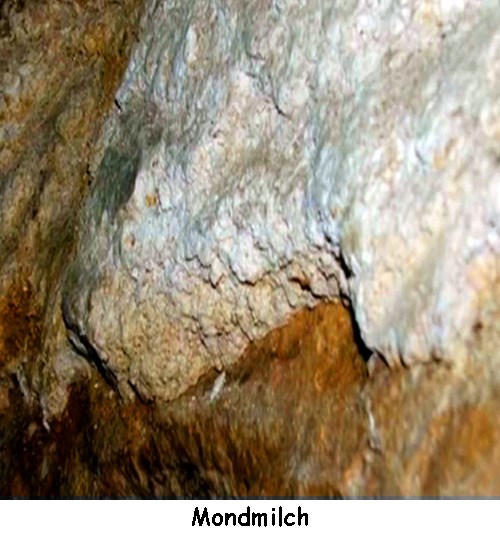 Le terme mondmilch (ou "lait de lune") désigne un spéléothème à forte teneur en eau. Cependant la composition des mondmilchs est variée : calcite, aragonite, hydromagnésite, mais aussi des minéraux non carbonatés tels que des phosphates, des sulfates et des silicates. Selon les impuretés présentes dans les mondmilchs leur teinte varie du blanc au brun foncé. De manière générale le "mondmilch" est plastique lorsqu'il est humide, pulvérulent lorsqu'il est sec. Le mondmilch est aussi appelé "lait de lune" par les spéléologues car pressé dans une main il donne un liquide blanchâtre. Carbonate hydraté dont la composition chimique et la nature minéralogique dépendent pour une large part de la montagne environnante et des minéraux véhiculés par les eaux