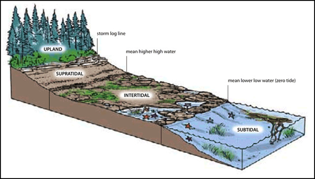 Description/Weathering information found on Wikipedia (see related webpage). Schematic of tidal zones image Illustrated by Soren Henrich. Image found on wordpress.com