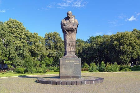 On the marble pedestal is the statue of Taras Hryhorovych Shevchenko. Was a Ukrainian poet, writer, artist, public and political figure, as well as folklorist and ethnographer. His literary heritage is regarded to be the foundation of modern Ukrainian literature and, to a large extent, the modern Ukrainian language. Shevchenko is also known for many masterpieces as a painter and an illustrator.