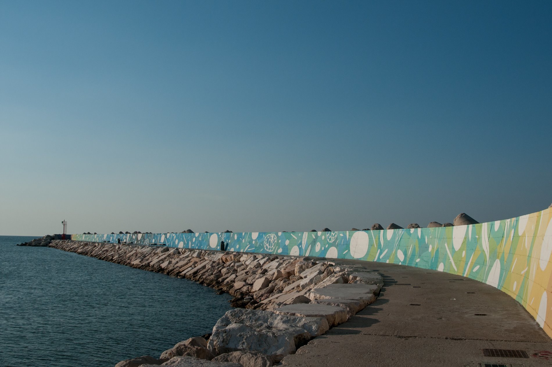 Questo percorso molto apprezzato dai cittadini pesaresi e dai tanti turisti che visitano la città è da qualche mese arricchito da Ciclico, un lungo murales di 260 metri. L' opera ha richiesto ben 300 litri di vernice e 35 persone coinvolte per l’opera progettata e realizzata dagli artisti Gabriele Arruzzo e Fabio Schirru (in arte Tellas, considerato tra i 25 street artist più famosi del mondo, ndr) insieme agli studenti dell' istituto Mengaroni di Pesaro.
