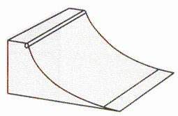 - Le quarter-pipe : comme son nom le laisse penser, le « quarter » est en quelque sorte un demi half-pipe. Il s'agit ainsi d'une plan incliné concave, arborant un coping à l'extrémité supérieure. On peut combiner deux quarters pour reconstituer un half-pipe, mais on peut également les combiner d'une autre façon, en faisant coïncider les deux copings, créant ainsi un spin.