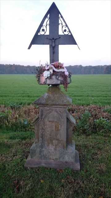 Die Denkmalakte spricht im Übrigen von einem "Wegekreuz, 19. oder 20. Jahrhundert, Sockel Sandstein, neugotische Formen, Kreuz gusseisern, 20. Jahrhundert."