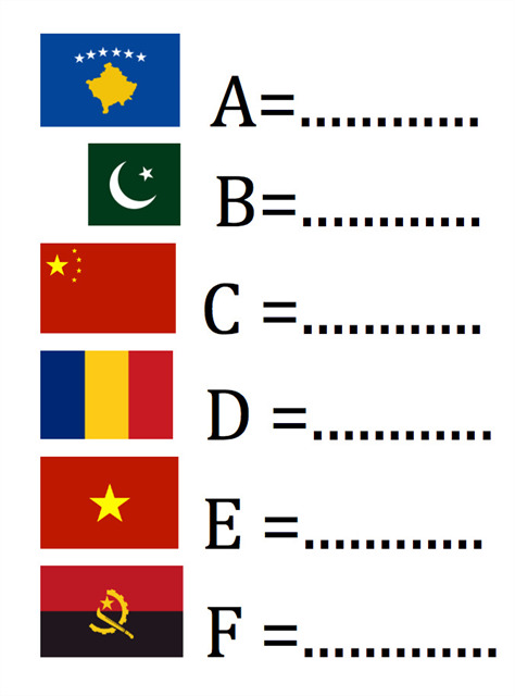 Du benötigst jeweils den Anfangsbuchstaben des Landes, das zu der jeweiligen Flagge gehört. Bilde aus diesem Buchstabenwert die iterierte Quersumme, sofern die Zahl nicht ohnehin einstellig ist.
