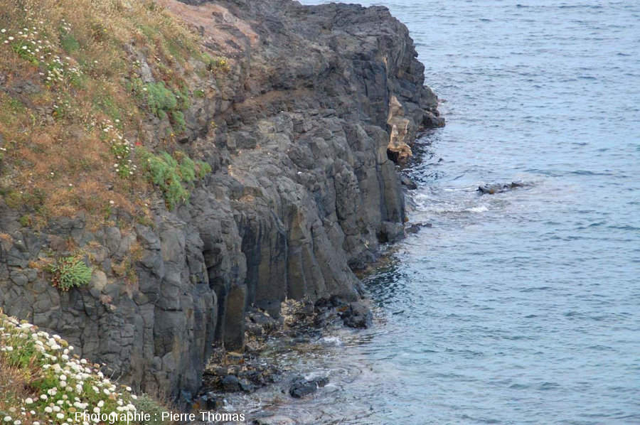 This "Pointe Nègre" (its name comes from the word negra, which means "black" in Occitan) is made up of two superposed flows of basalt (alkaline), hence its name, basalt being a dark rock.