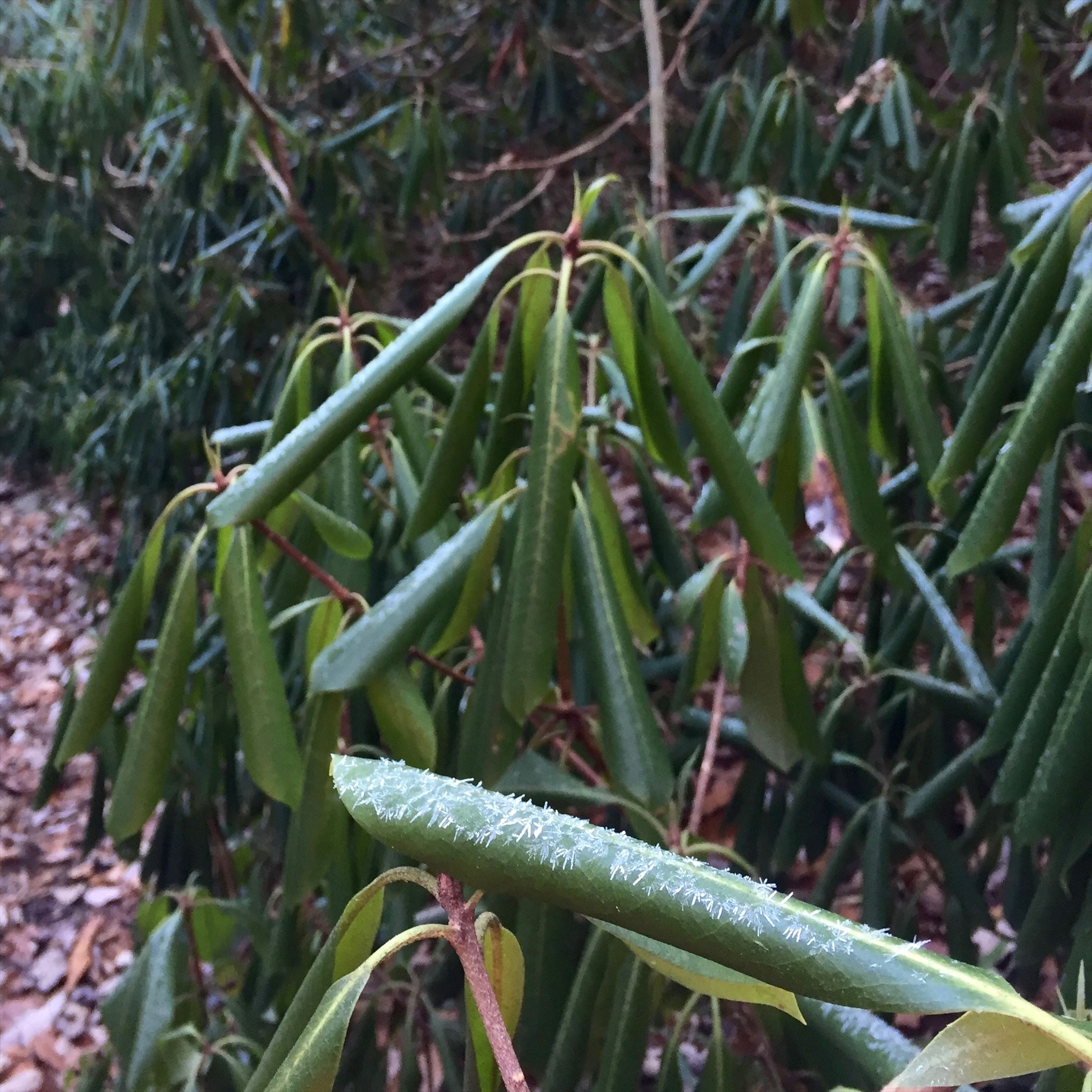 Rhododendron maximum has an unusual reaction to temperatures below 25℉.