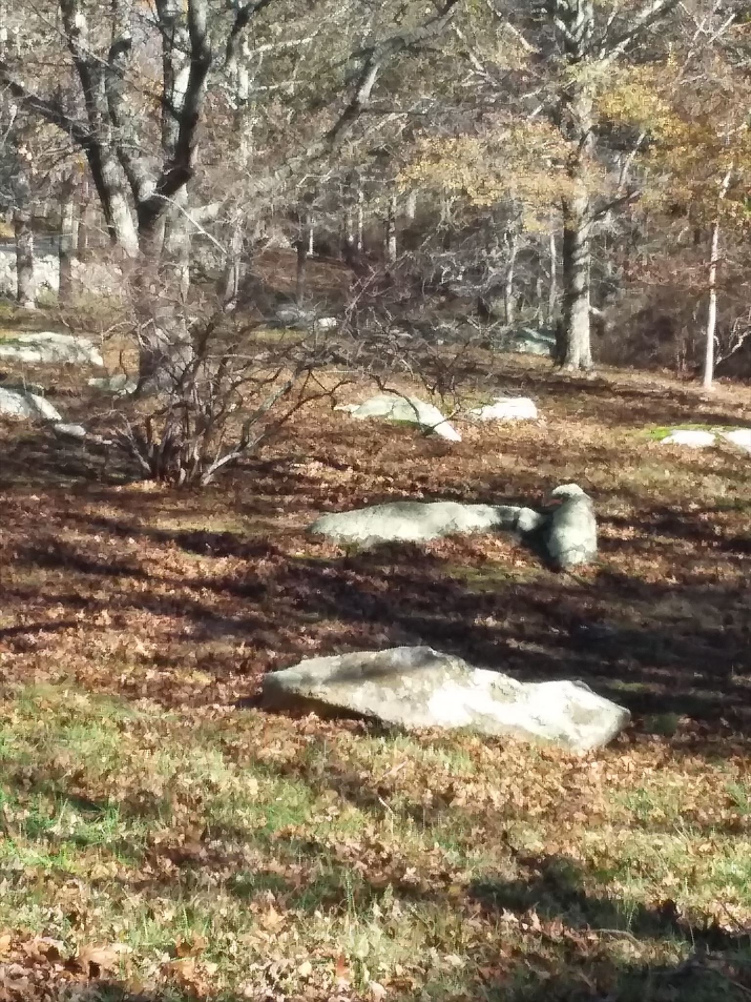 Erratics can range in size from pebbles to large boulders such as Waskosim’s Rock located near this cache’s coordinates. (Waskosim's Rock once served as a benchmark for establishing the boundary between lands of the native Wampanoags and property claimed by English settlers.)