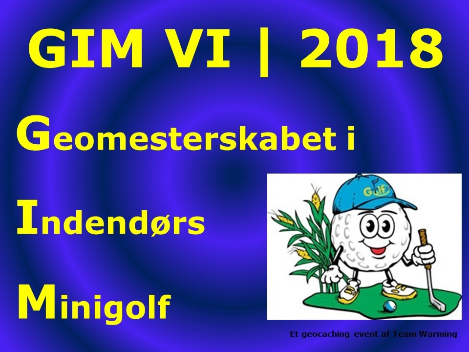 Nu nærmer vi os årets afslutning, og dermed også det nye år 2018. Traditionen tro er det så også tid til GIM 2018, som er et event, hvor vi geocachere mødes, hygger sammen, ønsker hinanden godt nytår, udveksler coins og TB'er, og går på jagt på banerne efter de skjulte cachebeholdere, og du har selvfølgelig også muligheden for at deltage i minigolfturneringen, hvor vi kårer forskellige vindere.