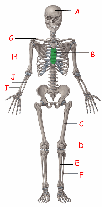 Die nachfolgende Ansicht des menschlichen Skeletts muss beschriftet werden.