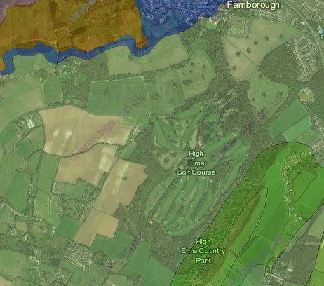 The chalk underlying High Elms is part of the Lewes, Seaford and Newhaven Chalk Formations. This chalk was laid down around 72 to 94 million years ago in the Cretaceous Period. The rocks were formed in shallow, warm chalk seas. The map below is taken from the BGS web site. The green areas are chalk, the blue area is part of the Thanet formation of sandstone (56-59m years ago) and the orange area is Lambeth Group of sand, silt and clay (48 to 59m years ago).