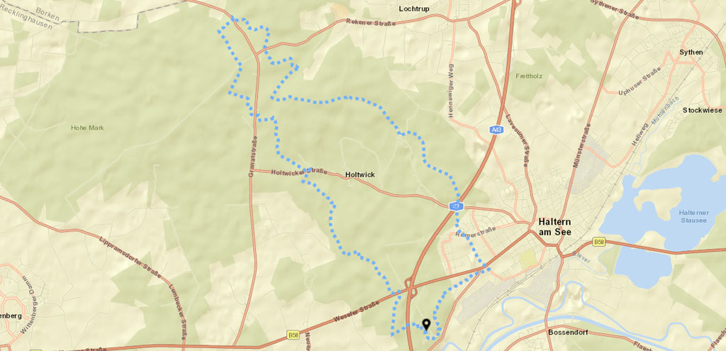 Hohe Heide Haltern am See und der Granatsberg sind die Ankerpunkte dieser Runde. Sie durchquert dabei die Holtwicker Wacholderheide, eine der drei letzten geschlossenen Bestände des gesamten Münsterlandes. Durch unkontrollierten Plaggenhieb entstanden, beheimatet sie heute gefährdete Arten wie die Heidelerche und die Zauneidechse. In Haltern am See befindet sich das Westtor, als Teil des rekonstruierten 4,8 ha großen Römerkastells Aliso aus der Zeit der Varusschlacht um 9 n. Chr..