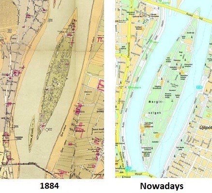 Today's appearance was developed through the connection of three separate islands, the Festő (Painter), the Fürdő (Bath) and the Nyulak (Rabbits), during the end of the 19th century, to control the flow of the Danube.