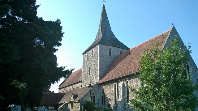 You can get to GZ by leaving the churchyard in a direction away from the main road. It cannot be accessed from nearby streets. You can find the cache at N 50° 4(H+B).(A+H)(J-F)(C-F) W 000° 5(B+D).(D+G)(J-G)(E+E-A). The checksum for all 15 digits of the final co-ordinates is 65. Alternatively here is a geochecker which also contains trailhead co-ordinates. You are looking for a micro container covered in black tape.