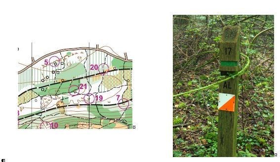 Orienteering is an activity not dissimilar to geocaching. Both involve looking for hidden objects in the outdoors. Orienteers use a map, geocachers use a GPS. This cache involves a bit of both. At a normal orienteering event a club will hide orange and white flags in the woods with electronic checkpoints and take them away at the end of the event. At a permanent orienteering course (POC), the flags are placed on permanent posts so that you can practice your navigation and find the flags whenever you like.