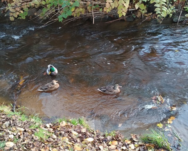 Sądzę, że kaczki przyciąga do tego miejsca szansa na dodatkowy posiłek od spacerujących wzdłuż rzeki i siedzących na ławeczkach ludzi. Co prawda można trafić na tabliczki z prośbą o niedokarmianie, ale nie wszyscy zwracają na nie uwagę (kaczki na pewno nie). Jeśli nie udało wam się spotkać kaczek w parku (Kaczuszki - GC7DJ05), może tutaj będziecie mieli więcej szczęścia. Powodzenia!