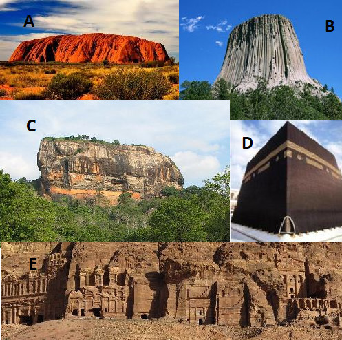 Recognize the following famous rocks, solution is the number of letters of the country the rock is at. If there are two words in the country's name, count only the FIRST word.