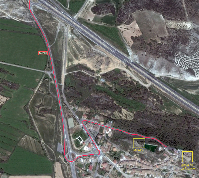 Muy cerca de la autovía. Tienes que dejar la autovía por la salida 51. Luego vas por la carretera N-240 (dirección Monzón) y en menos de 1 km llegarás a Castejón del Puente. Una vez allí debes tomar la rotonda y coger la tercera salida. Entonces tienes que tirar recto (unos 100 m) hasta que puedas girar a la derecha. Ahora verás una recta que está en subida (totalmente asfaltada), pues síguela hasta el final y antes de llegar a la iglesia encontrarás los aparcamientos.