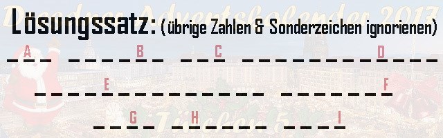 Nachdem ihr alle Mitwirker des Adventskalender gefunden habt, setzt die übrig gebliebeben Buchstaben zum Lösungsatz zusammen, ignoriert dabei die Zahlen & Sonderzeichen! Nehmn dann den Buchstabenwert des jeweiligen Buchstabens für die Errechnung des Finals. Viel Spaß ;)