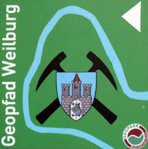 Wir laden ein und bringen euch mit einigen themenbezogen Aufgaben diesen GeoPfad etwas näher. Die Anforderungen sind so gestellt, dass eine tatkräftige Mitarbeit nötig wird und somit auch letztendlich ein Lerneffekt aus diesen spannenden geologischen Bereichen erzielt werden kann. Der GeoPfad Weilburg ist flächendeckend beschildert. Die Beschilderung besteht aus kleinen grünen Schildern mit dem Weilburger Wappen, zwei gekreuzten Geologenhämmern und dem Schriftzug "Geopfad Weilburg". Die weißen Pfeile auf jedem Schild weisen die Gehrichtung aus. Der GeoPfad ist Teil des Geopark Westerland - Lahn - Taunus. Von den 13 Stationen haben wir einige auserwählt, an denen die Aufgaben zu erfüllen sind bzw. Fragen dazu gestellt werden. Die verbleibenden Stationen haben wir kurz beschrieben und als RefPoints aufgeführt. Es wäre toll, wenn ihr diese sehenswerten Punkte ebenfalls in eure Route mit aufnehmen würdet. Wir haben uns zu dieser Variante entschlossen, da sonst das Listing und die Aufgaben zu komplex und unübersichtlich geworden wären. Sollten einmal die Koordinaten abweichen und schwanken, könnt ihr euch immer an der Wegführung orientieren.