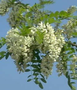 Robiniji (Robinia pseudoacacia) vse prepogosto rečemo napačno akacija ali neprava akacija (prevod dela latinskega imena - pseudoacacia). Čeprav skupaj z akacijami sodi v isto družino (metuljnice – Fabaceae), pa sta rodova povsem različna. Res pa je, da je robinija na videz nekoliko podobna nekaterim akacijam. Za razširjenost napačnega imena akacija imajo veliko zaslugo čebelarji, ki med robinije ponujajo kot akacijev med. Robinija je čebelarjem bolj znana kot akacija. Botaniki so se odločili uporabljati ime robinija, ker so izraz akacija obdržali za sredozemsko zelnato rastlino. Verjetno bo med ljudmi in posebej čebelarji ostalo v rabi ime akacija. Akacija ni avtohtona rastlina. Najprej je bila zasajena v vinorodnih krajih, kjer so jo vzljubili zaradi hitre rasti in trajnega lesa, kar sta odlični lastnosti za pripravo vinogradnega kolja. Tako največ akacije raste povsod tam, kjer so vinogradi.