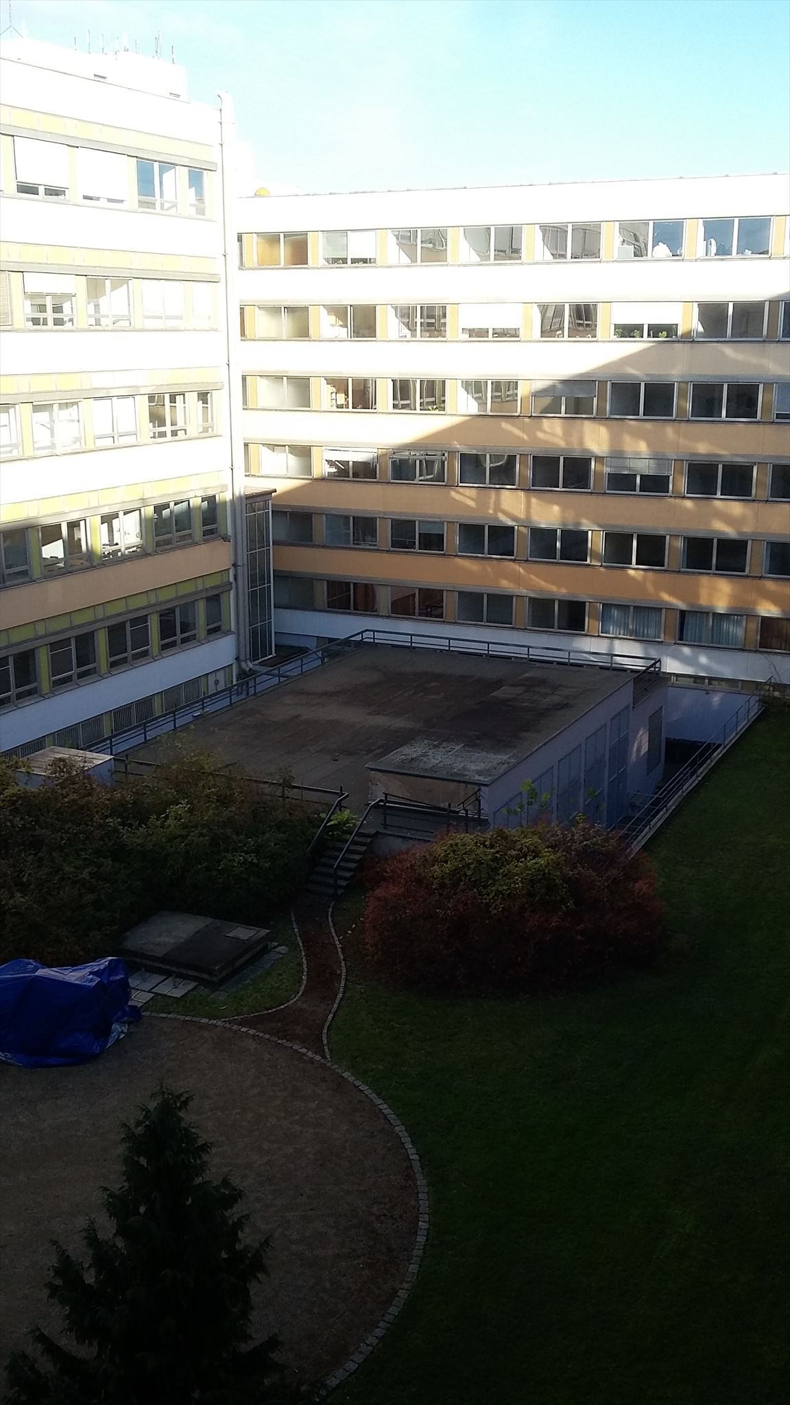 Leider nicht! Die Treppe führt nur auf ein Parkdeck. Aber dass sie dahin führt, ist schon besonders. Denn sie wurde erst 2017 als Ersatz für die alte Betonkonstruktion errichtet. Und das, obwohl der ganze Komplex der heutigen Lingnerstadt in naher Zukunft abgerissen werden soll.