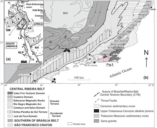 The region where the Pedra da Gávea is located is part of the geotectonic entity Atlantic Orogenic Belt or Ribeira Belt. The geological ladscapes making up this orogeny correspond to geological structures produced by the processes of convergence of the active margins of the brasilianos / pan-African tectonic plates. During the Neoproterozoic era, between 1 billion and 540 million years ago, several continental plates collided and stuck together creating the Gondwana super-continent. This continent would last until the end of the Paleozoic era, concentrating all land situated in the southern hemisphere. Between African and South American plates existed a paleo-ocean called Adamastor. With the continental plates movement towards each other, the oceanic lithosphere - the Adamastor ocean floor - was subducted under continental plates. Neoproterozoic rocks created during this orogeny are the result of subduction events during the convergence, collision and sticking of the active margins of the Brasilianos / Pan-African tectonic plates. The subduction process of the oceanic floor enabled the ascent of magma close to the active continental margins and resulted in granitic intrusions and placement of several granitoid bodies of various sizes inside the continental plate. The magma intruded and crystallized at great depths in earth's crust creating many rocky bodies between 500 and 490 million years ago. The Rio de Janeiro batholith (Sugar Loaf and Corcovado) - is a testament to the collage of continental plates that made up the Brasilianos / Pan-African orogenies at the south continental margin of South America and Africa. The accurate dating of this sincolisional arc in 560 millon years provided the most consistent estimate for the age of amalgamation of the super-continent Godwana.