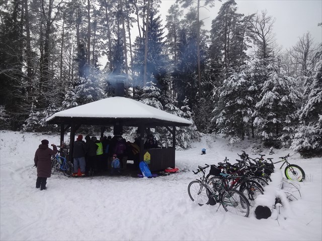 Jak se ukázalo na Winter cykloeventu 2017, ohniště v Hradeckých lesích je ideální cíl. Lze se tam ohřát, mohou tam dorazit i necyklisté a jejich potěr, vzdálenost je tak akorát. Navíc - když to má být tradice...