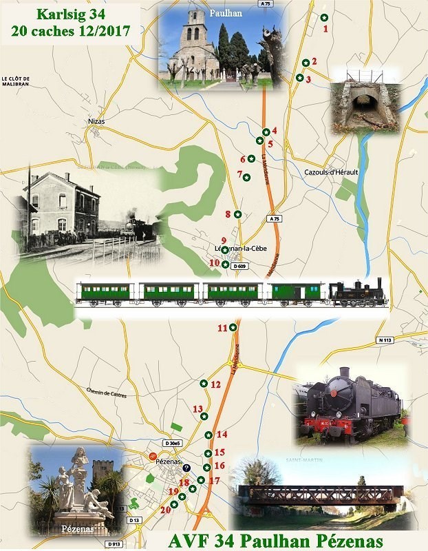 Première cache d’une série de caches sur l’ancienne voie ferrée qui reliait la commune de Paulhan à Pézenas puis Saint Thibéry. C’est une section de la ligne Vias Lodève exploitée par la Cie des Chemins de Fer du Midi.
