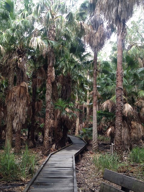 The Paperbark swamps are found in lowland coastal areas and provide a buffer zone between the shoreline, estuaries and river systems. Their understorey has a variety of ferns, grasses, orchids and epiphytes. The extensive root system of the paperbarks create sediment mounds which allows the germination and survival of less water-tolerant plants such as the cabbage-tree palm (Livistona australis).