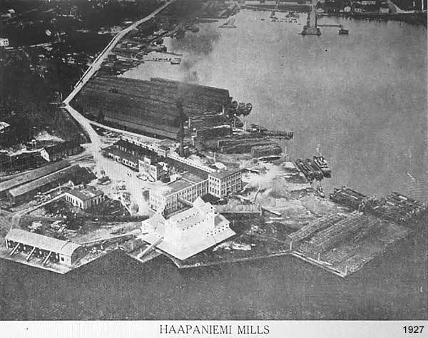 Vientiä pystyttiin jatkamaan I maailmansodan vaikeuksista huolimatta ja Haapaniemestä kehittyi seutukunnan suurin teollisuuslaitos. Mittasuhteet avautuvat oheisesta kuvasta vuodelta 1927. Koko niemelle ei mahtunut muuta kuin em. teollisuuslaitokset raaka-aineineen .