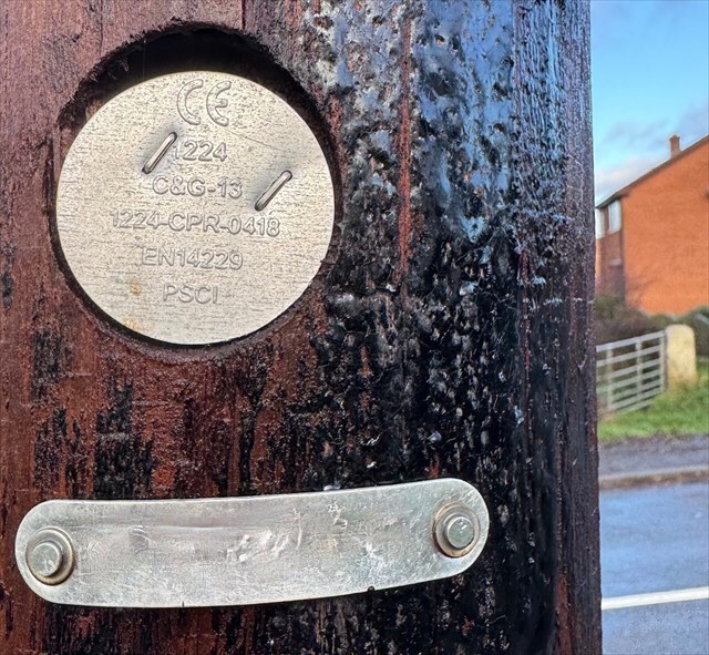 To find the cache, first locate the 8 letter ID plaque, on the pole below the recessed, circular CE disk. The positions of each letter are then used to reveal the coordinates, for example, if it read FISHLAKE, F=1, H=4 and K=7 etc.