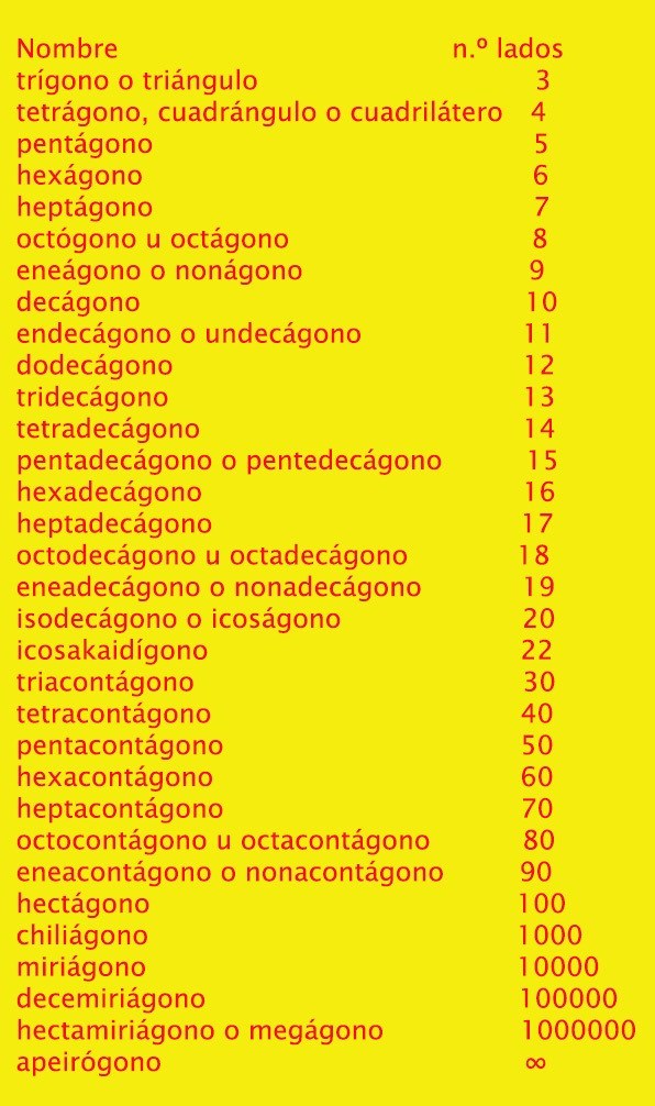 Ahora bien, según el número de lados que posean (el número de lados es igual al número de ángulos que tiene la figura) los polígonos se pueden clasificar de la siguiente manera: