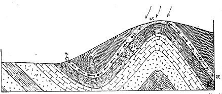 3) Kontaktni izvori: voda izvire na dnu kosih kontaktnih površina između nepropusnih slojeva (2) i prohodnih ispucalih stena (3).