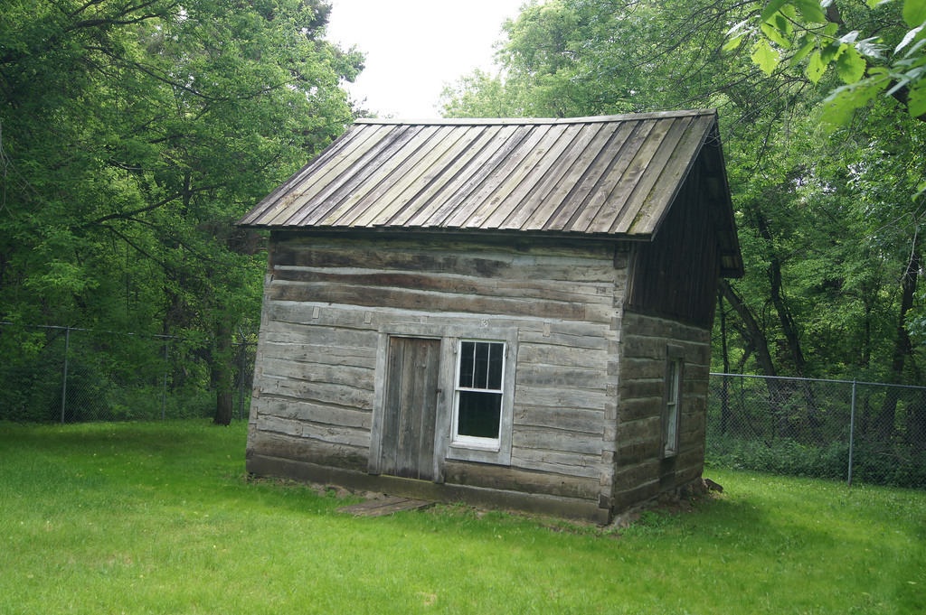 To find the cache, go to the reference point and read the monument .Find the words (cabin in AAAA. It was)
