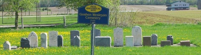 Goshen Wesleyan Cemetery - Alternate Cemetery Name: Cross Cemetery - is located at 7619 6th Line Road (Lot 10 Concession 7), Mapleton Township, Wellington County.