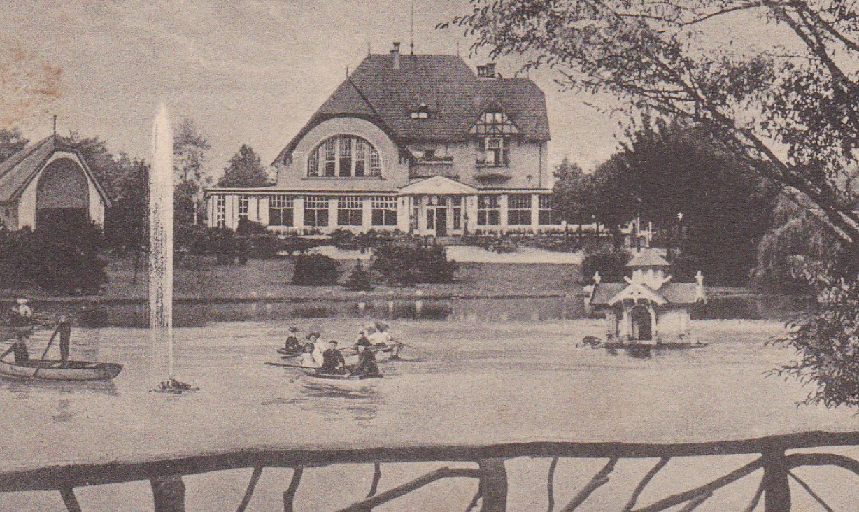 Eine Bootsfahrt auf dem Weiher im Stadtgarten. Die Möglichkeit auf dem Weiher Boot zu fahren bestand bis in die 1980er Jahre. Heute fahren dort lediglich ferngesteuerte Modelle.