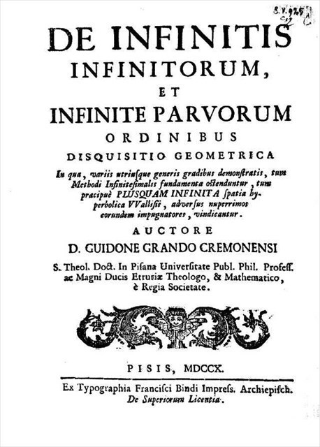 Ci sono alcuni paesini dove è possibile vivere come fossero eremi. Nonostante Lugnano sia tutto tranne che un paese isolato, di quelli dove ritrarsi dal mondo a speculare, dal secolo XIII fu di proprietà dei camaldolesi, congregazione a cui apparteneva l'abate matematico (e non solo) Luigi Guido Grandi. Costui nel secolo XVIII scelse Lugnano come sua dimora appena divenuto professore all'Università di Pisa e vi edificò la sua villa, proseguendo (o inaugurando?) la moda tutt'ora in auge tra gli universitari di prender casa sul lungomonte. Quindi è stato su questi ameni declivi dei Monti Pisani che mi piace pensare abbia formulato le sue ardite elucubrazioni sull'infinito e l'infinitesimo, importando per primo in Italia i principi del calcolo infinitesimale introdotto da Newton e Leibniz; fu nel 1710 che pubblicò, proprio a Pisa, il testo che dà il nome a questa cache, presso ex Typographia Francisci Bindi., in cui proponeva le sue abissali riflessioni d'avanguardia che avrebbero ben presto scompigliato i parrucconi boccolosi di tutti i pensatori di quel tempo. Con questa cache ti vorrei accompagnare a casa ti questo importante ma poco conosciuto scienziato di casa nostra, chiamata guarda caso Villa Grandiana, non osando sperare che la tua ricerca sia addirittura appagante, ma per lo meno convergente...