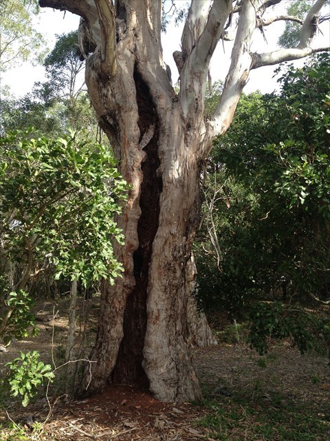 This tree bears the scars of having its bark removed by Aborigines in preparation for making a bark canoe. The canoe would have been approximately three metres in length - a suitable size to accommodate a single individual. It's probable use would have been to collect shellfish from the myriad of sandbanks and mud flats in the area.
