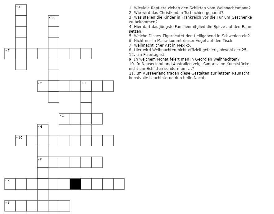 Sollten in den Lösungswörtern Umlaute vorkommen sind diese auch als solche einzutragen. Das Gleiche gilt für Abstände bei mehrwörtigen Antworten.