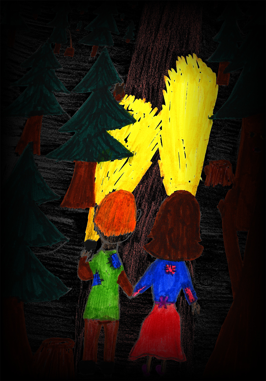 Jednoho chladného, temného večera tatínek zavedl děti na kraj lesa (úvodní souřadnice) a řekl: "Tak děti, je mi to hrozně líto, ale já se o vás nemůžu furt starat. Kvůli vám už jsem přišel o dobrých 50 FTF. Sbohem a šáteček." A odjel.