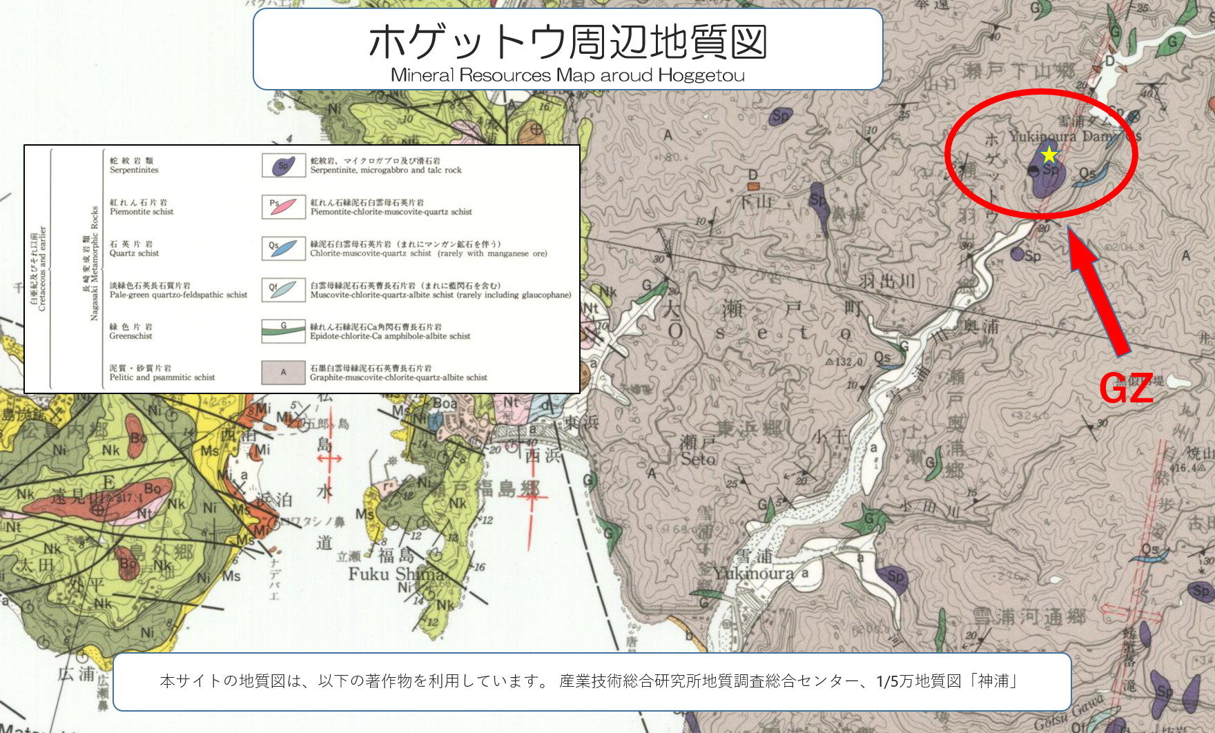 Nishisonogi Peninsula is covered by the metamorphic rock called "The Nagasaki anamorphism rock". (reference chart below "Mineral resources Map around Hoggetou" )