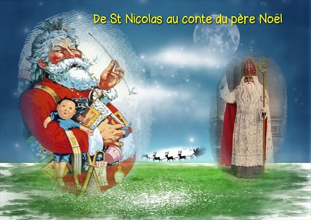 Le Père Noël aurait pour origine Saint Nicolas. On retrouve dans sa représentation toute la symbolique de St Nicolas (barbe blanche, manteau rouge…).