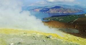 Sulphur deposits around a volcano vent