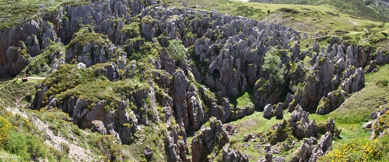 Through a path marked by a wooden walkway, in the opposite direction of Lake Ercina, just 200 m from it, you can see a kartic landscape, which is not the product of nature, but the hand of man, when In the second half of the 19th century, in the year 1879, a mining exploitation was created, from which manganese, iron and cinnabar were extracted. Mainly manganese was obtained arosing irregularly between a karst of limestone, which has given rise to the incredible landscape that can be now observed. These minerals were found in the crevices and hollows of the limestones that form the Picos of Europa in this sector.