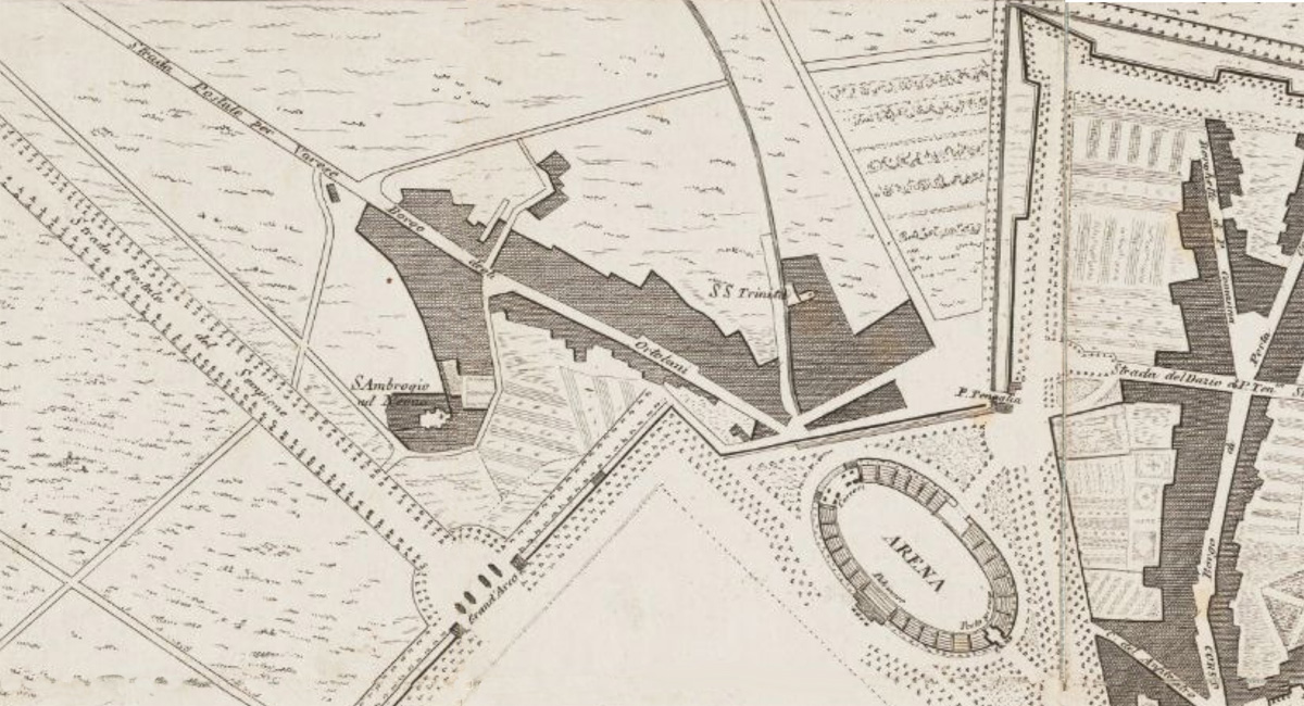 The Borgo degli Ortolani developed practically along the entire via Luigi Canonica (Swiss architect, 1762-1844) and its natural continuation, via Piero della Francesca (painter, 1415-1492), which until the second half of the 1920s (of the twentieth century) maintained the toponym of via Canonica.