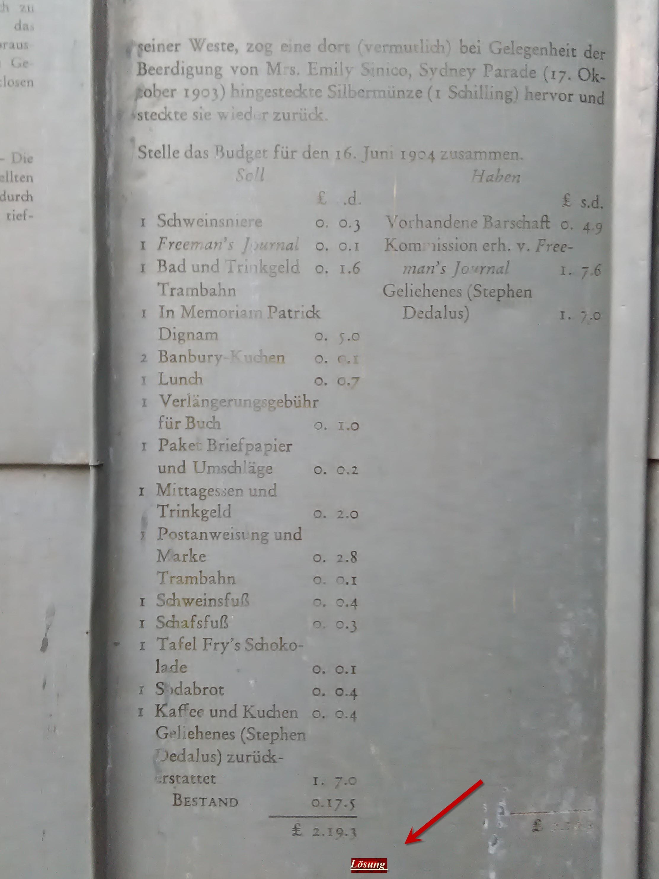 Sucht am Lesehof (1987, Haus Rucker Co) diese Buchhaltungs-Aufgabe. Unten auf der „Seite“ ist eine dreistellige Zahl - die ursprüngliche Seitennummer.